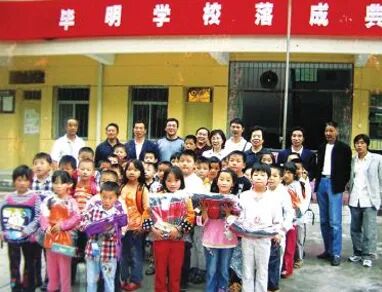 毕生积蓄全捐赠 深沉爱心助学子 梅陇镇的毕原鸿和毛怡夫妇曾入选中央文明办发布的2019年7月中国好人“助人为乐好人”榜。 (图为毕明爱心小学落成典礼)
