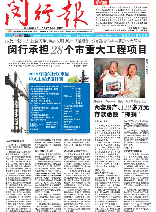梅陇镇居民毕原鸿老人在闵行区中心医院去世
