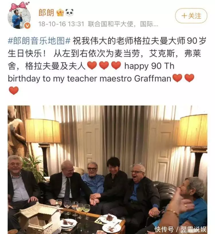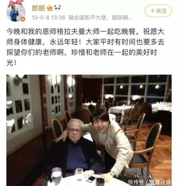 郎朗和格拉夫曼 在柯蒂斯音乐学院,格拉夫曼曾师从于钢琴家霍洛维兹七年。郎朗也记得格拉夫曼给他描述的一个真实故事——他第一天晚上跟霍洛维兹大师学习,在霍洛维兹的钢琴上演奏拉赫玛尼诺夫的协奏曲,钢琴上的照片就是拉赫玛尼诺夫。格拉夫曼因为弹得非常用心,结果照片掉到了地板上,非常紧张。 在微博上,郎朗记录了自己和格拉夫曼交集的点滴,每逢格拉夫曼生日或教师节,他还会给老师送上祝福,并希望他身体健康、永远年轻。