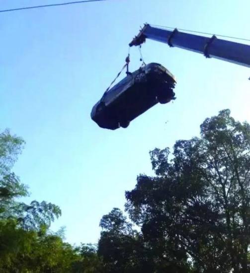 警方到达后,立即联系吊车,直到下午4点多,沉没已久的车子才被打捞上岸。