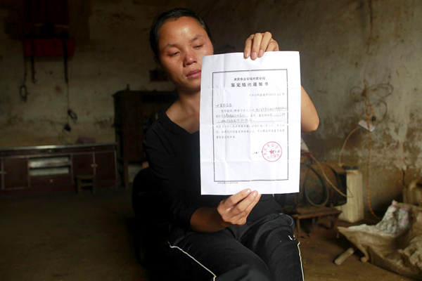 死亡男童的母亲手拿鉴定结论通知书。东方IC