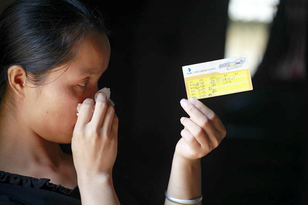 死亡男童的母亲手拿儿子的接种卡,沉浸在悲痛中。东方IC
