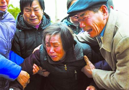 10时40分,灵车绕到了孙家门前。志刚的画像就摆在灵车的前挡风玻璃后,清瘦、俊朗,恍如昨夕。“我的刚儿……”正站在屋外的孙父——孙禄松,踉跄着趴在灵车前,不停地拍打着车窗,痛哭欲绝。曾经熟悉的身影转眼成灰,孙禄松的情绪迅速在人群中扩散,百人号哭,挥泪如雨。