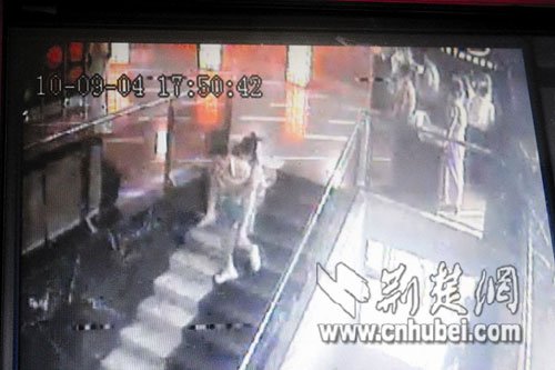 杨小霞向记者介绍,下午5时42分左右,她看到一女孩在“一碧千里”包房门口呕吐,起初有一名男子搀扶,后来又出来多名男子将女孩围住,她见状后,叫来楼层清洁员麻秀丽将地面清扫干净。记者随后在监控画面中也看到了这一幕情景,呕吐的女子正是丽丽。