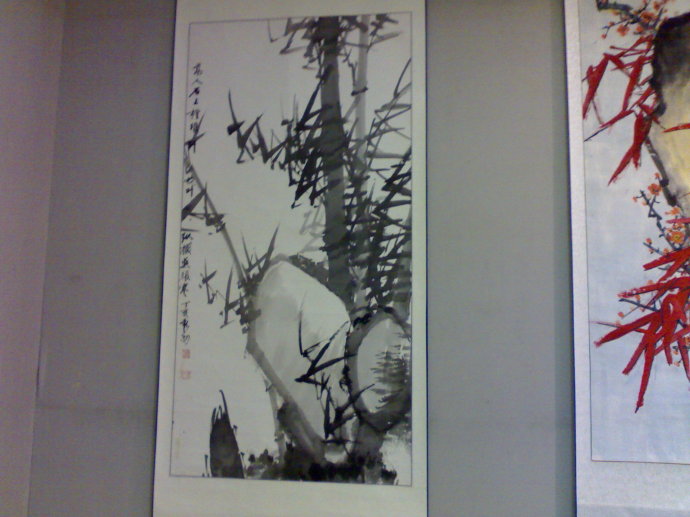他画的竹子,取八大山人之冷,郑板桥之清劲,吴昌硕之气势,卢坤峰之技巧,自成一体。谭谈总结“他画竹,以清、劲、冷、怒为是。清含高格,劲含豪放,冷含清醒,怒含激情,此四性为竹赋予新灵魂”。