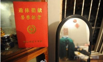 2012年6月11日晚,54岁的宗秀武走完了人生最后的历程,他也完成了自己的心愿,捐献了眼角膜和遗体。“宗秀武很伟大,他的生命得到了延续。”负责眼角膜移取手术的青岛新视界眼科医院的牟大夫说。11日晚7时40分左右,记者来到城阳区烟青路的一家工厂宿舍,此刻的宗秀武安静躺在床上,已经没有了呼吸,伴随他的妻子李冬梅已经哭成了泪人。老宗走得很安详,身上穿着生前最爱的西装,打着领带,狭小的房间内放置着他的眼角膜和遗体捐赠协议