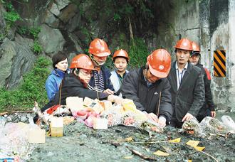 创意旅行团团员家属昨天上午到苏花公路上举办祈福仪式,神情哀痛,下午即传出DNA比对有了结果。
