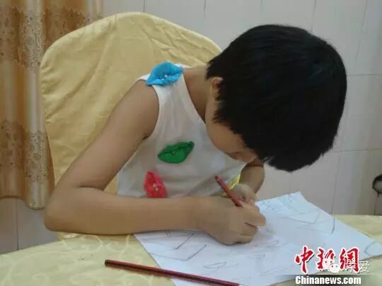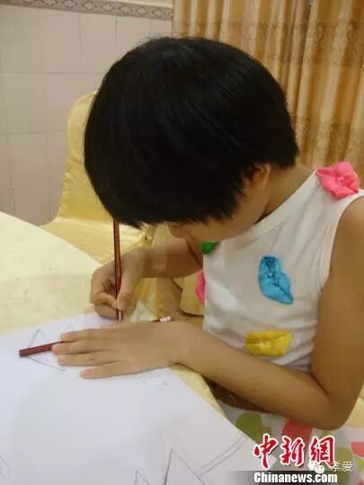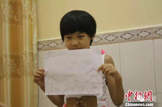 16日,身患重症再生障碍性贫血(白血病)的11岁湖北随州农村女孩陈述珍来到珠海斗门,这个曾被生母抛弃的小女孩准备在珠海度过人生最后一段时光,并且在死后将眼角膜等器官捐献给有需要的患者。图为陈述珍举起自己的画
