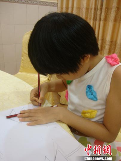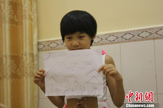 16日,身患重症再生障碍性贫血(白血病)的11岁湖北随州农村女孩陈述珍来到珠海斗门,这个曾被生母抛弃的小女孩准备在珠海度过人生最后一段时光,并且在死后将眼角膜等器官捐献给有需要的患者。图为陈述珍举起自己画