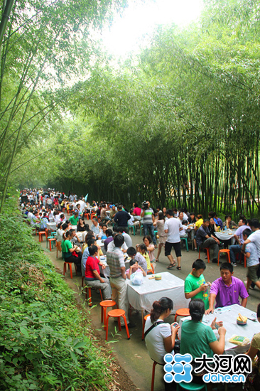 记者查阅网友首发帖的时间为8月7日,从图片上的信息来看,“万人宴”应该中在重渡沟风景区举办。