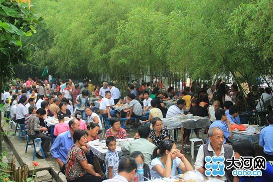 河南日报8月9日报道的重渡沟风景区“万人宴”图片