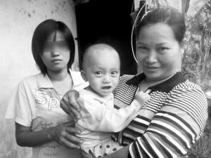杨富勇的妻子(左)因患精神病无力照顾年幼的孩子,其亲属(右)目前在临时看护孩子。