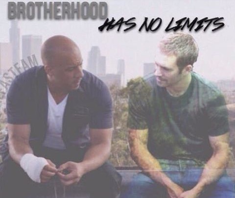 照片取自《速度与激情》系列的剧照,一边的保罗-沃克呈半透明效果,照片上写着“兄弟无极限”几个字,表达了范-迪塞尔对这位好友的怀念。