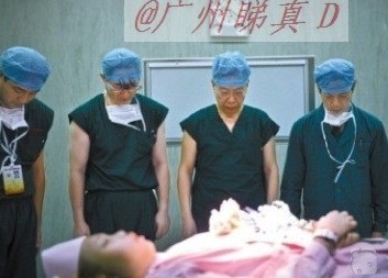 手术前,主刀医生、卫生部副部长黄洁夫率医生们向吴华静的遗体默哀。