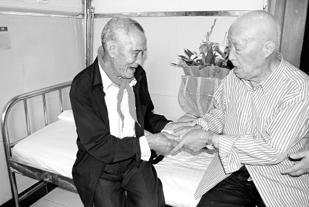 记者看到,病房里两位老人拉着手聊得很投机,临别时徐益卿老人握着朱义来的手说:“咱俩交个老朋友吧,等你治好病,我带你在西安好好转一转。”