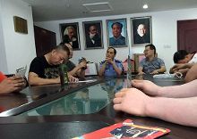 重庆四十二中副校长张晓辉(右二)与郑陈伟父母及亲属商谈后续事宜