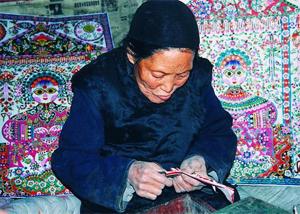 2、库淑兰独创了一种前无古人的表现其自我灵魂中真善美的艺术模式--剪贴画。