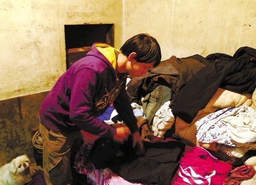 低矮逼仄的简易房内,昏黄的灯光下,15岁少年龙龙拿出课本,认真地写起了作业。
