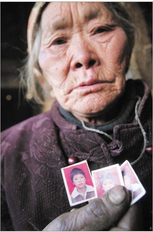 唐仕才的奶奶手里拿着孙儿仅有的三张照片 王宗林 摄