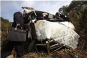 进入事故现场,远远就看到山崖下的一辆面包车,已摔成铁饼。交警正在勘查现场。在山崖边,几个染满鲜血的书包和散落的书本显得特别刺眼。工作人员介绍说,这几个书包是遇难学生的。事故发生后,死者已经被送往殡仪馆,伤者由于伤势较重,已经被送到文山州医院抢救。