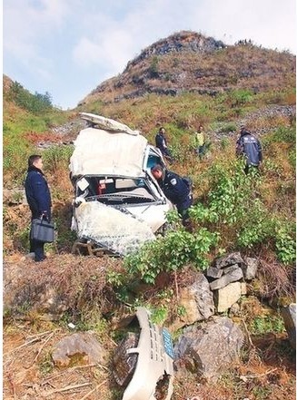云南广南县一载12名学生面包车翻下山崖 7死7伤