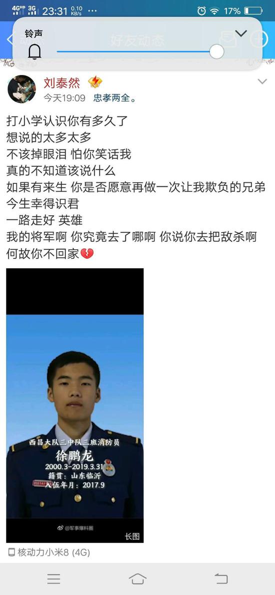 确定徐鹏龙牺牲的消息是在4月2日下午3时左右,“不敢相信,当时脑子一片空白,心里不知道是什么味。他爸妈昨天一晚上都没睡,今天一大早就去四川了。”徐兴存直到现在都难以接受。