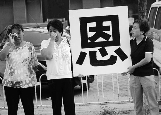燕化厂区社区居民打出感恩牌子。