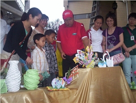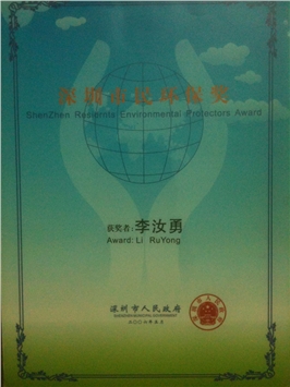 今年深圳提出大力发展循环经济。究竟什么是循环经济?循环经济和人们的日常生活有什么关系?普通市民又能为发展循环经济做些什么?在对这些问题进行一番深入的思考之后,李汝勇看到了环保义工新的责任和使命。很快,他在市义工联环保二组成立了一个“环保手工制作组”,由40多名义工参加,他们的服务内容就是用各种废弃物制作手工艺品,走进社区和学校向人们宣传废物利用、循环再生的环保理念。令他感到自豪的是,义工们的环保手工作品,2006年首次走上了第八届高交会的舞台,这些作品中蕴涵的环保理念,也随着高交会的巨大影响传播得更远、更广……而就在人们迎接2007新年之际,又传来喜讯,李汝勇组织策划的“环保脸谱”在深圳市委宣传部、深圳市文化局和深圳市文联等单位举办的深圳市新资源创意比赛获业余组一等奖。