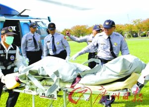 空勤及消防人员将在苏花公路112.8公里下边坡处发现的大腿尸块送往宜兰殡仪馆。CFP供图