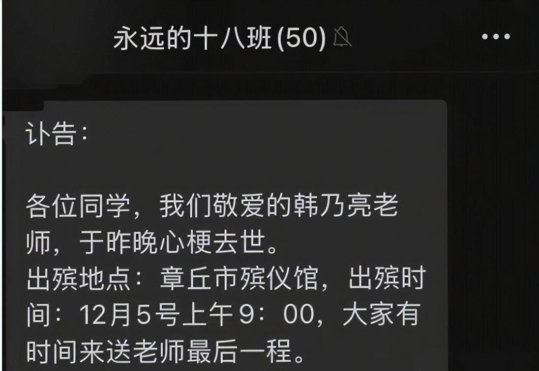 12月4日,山东章丘四中的高三班主任韩乃亮老师,传出去世的消息。