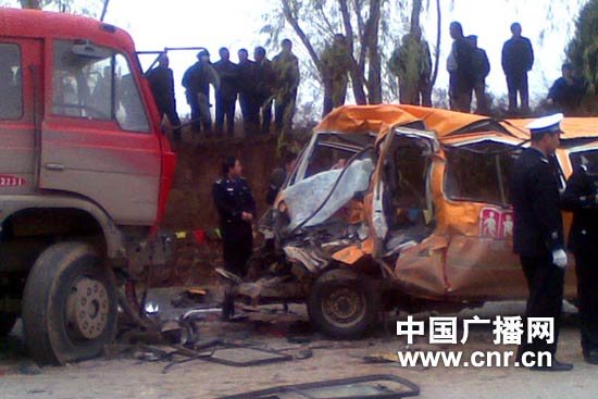 甘肃正宁县一幼儿园校车被撞 19人遇难