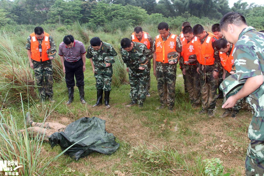 昨日上午6时15分,随着洪水逐渐退去,搜寻了一夜的武警官兵、公安干警和当地村民终于发现葛晓威在黄村河齐坑段附近的一处草丛中静静地躺着。