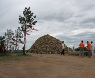 达斡尔族实行土葬。过去各屯都有“莫昆”的公共墓地,墓地内各户都有指定的位置。埋葬次序顺着岗坡,长辈在上,晚辈在下,如是平地,长辈靠北,晚辈靠南。埋葬同辈人年长在左,年幼在右,晚辈先逝给长辈留位置,年幼先逝给年长者留位置。夫妇先后死亡要实行夫左妇右并骨。难产死亡、孕妇死亡及暴死者都进行火化,遗骨埋在别处。未婚姑娘死亡埋在别处。婴幼儿夭折,用草捆扎弃于野外。