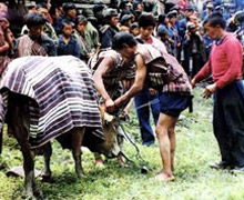 接着,主祭人把动物模型撒向围观的人群。这时锣鼓齐奏,人们结圈歌舞,尽兴方散。