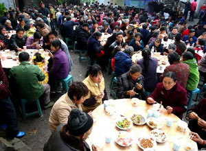 除留下少数几人外,其他人去吃丧宴。丧宴厅外备几盆清水,白酒和糖果,凡从殡仪馆回来的人在进入宴会厅前要先洗手,用酒涑口或含一块糖。丧宴开始前,家属列队,殡仪员主持。主持宣布:家属对各位亲朋来参加葬礼表示感谢,给大家鞠躬,然后由家属代表讲话。主要内容是感谢,略备薄酒,请大家享用。