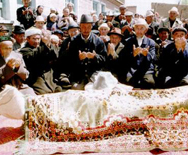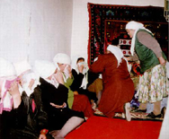 我国的哈萨克族主要分布于新疆维吾尔自治区伊犁哈萨克自治州、木垒哈萨克自治县和巴里坤哈萨克自治县。少数分布于甘肃省阿克赛哈萨克自治县和青海省海西蒙古族哈萨克族自治州。2000年第五次全国人口普查公布,哈萨克族人口数为1250458人。哈萨克人的丧葬仪式基本上是按照伊斯兰教的仪礼进行的。人死之后脸朝西安放,绑住下巴颏,用洗净的布遮盖脸面,用围帐将遗体围挡起来。遗体在家停放一天或三天,由近亲点灯守灵。前来吊唁的人们要进屋与遗体告别,并安慰死者的亲属。然后用清水洗尸,洗完后用白布缠裹尸体,安放在灵柩内。接着举行祈祷赎罪仪式。赎罪仪式结束后,将灵柩抬到屋外,举行“加纳扎”仪式。参加者全体站立,由阿訇主持念经。念完经后,死者的亲属问众人:“这个人生前是怎么样的人?”众人异口同声地回答:“是个好人,善良的人,祝他升入天堂!愿他安息吧!”