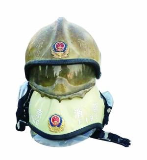 特勤支队战士陈兴达,在商城内部突遇热浪,幸而及时撤离,没有受伤。陈兴达的头盔被烤化。这样的头盔,最高可承受260℃高温。北京消防供图