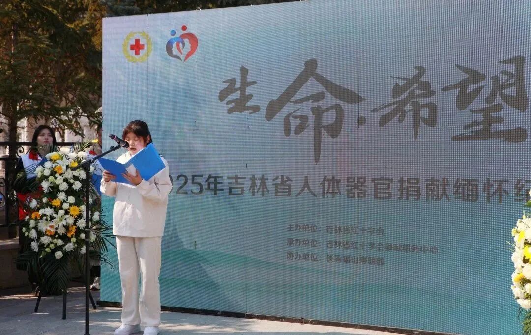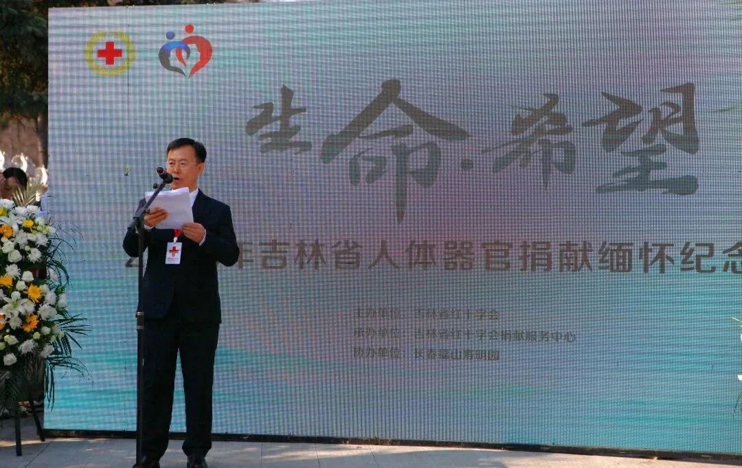 吉林省红十字会领导致辞,向全省人体器官(遗体、组织)捐献者表达深切缅怀与崇高敬意,向捐献者家属致以崇高敬意。领导简要回顾了吉林人体器官捐献事业十多年来取得的辉煌成就,呼吁全社会大力弘扬“人道、博爱、奉献”的红十字精神,以捐献者为榜样,传递正能量,让公益点燃希望,不断创造生命的奇迹。
