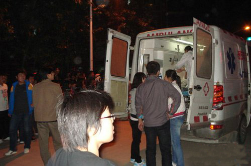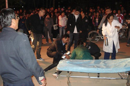 16日晚,河北大学校园内的事故抢救现场。