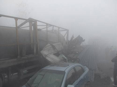 糟糕的是,随后又有10多辆车陆续发生追尾,整个路段上撞击声、尖叫声不断。“大雾造成能见度低,加上路面结冰,导致车辆失控。”高速交警成乐大队二中队指导员侯一说,据统计,眉山至彭山,1公里路段共发生4起交通事故,涉及车辆18辆。