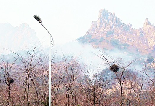 浮山山头浓烟滚滚。