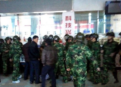 1月17日早上,家属再次医院讨说法,并在医院大门口打着“还我儿命,给我公道”的横幅,遭到一群身着迷彩服、头戴钢盔、手持钢管的人殴打,导致几位家属重伤。