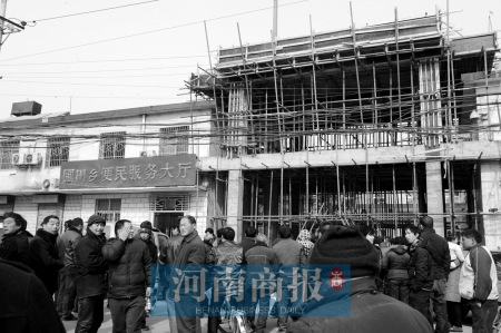 昨日上午9时许,郑州市圃田乡政府大门前,近百名群众围在乡政府大门前。众人低语着,眼睛瞄向乡政府院内。