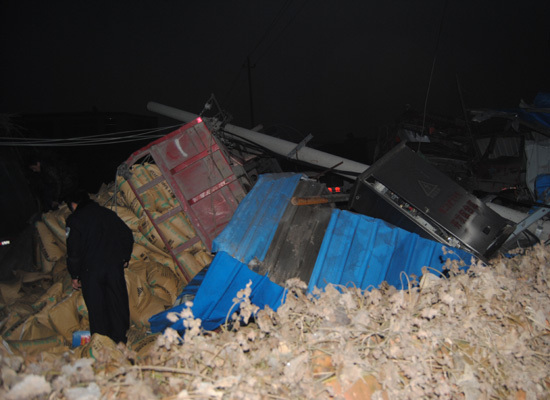12月8日凌晨4点48分,105国道商丘宋集段两辆货车相撞,一辆牌号为豫E35622的货车冲进路边民房,致使两人死亡,四人受伤。
