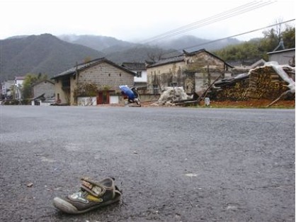 昨日中午,记者赶到现场时发现,佳佳被撞倒的地方仍有血迹。村民称,事发时现场的血更多。在村民的指点下,记者看到佳佳的一只鞋子落在被撞倒的地方,另外一只鞋在约50米开外的地方。村民称,这只鞋卡在了车轮里,是后来取出来的。