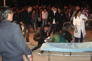 16日晚,河北大学校园内的事故抢救现场。