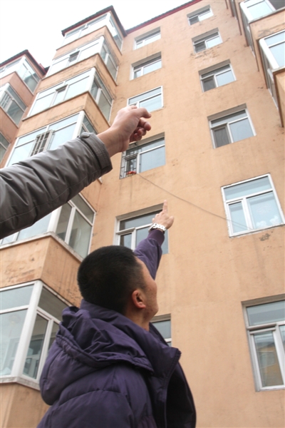 据谢尚威讲,事发前一天他借了大舅子的微型面包车,当天早晨是来还车的。他把车停在门口,刚刚挥手告别。就听到有人喊“救命”,最初还以为是有人在开玩笑,听到了第二声后,他将羽绒服的帽子掀起来,循声望去,看到对面的5楼窗台上挂着一个人,双手抓着窗沿,从下向上只能看到一双穿着黑袜子的脚在墙上乱蹬。