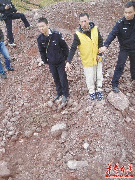 犯罪嫌疑人指认抛尸现场。 警方提供
