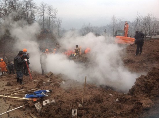 王蒙:可能有几十万方的山体从高坡下倾泻而下,整个小村庄已经夷为平地,现场的情况很惨烈,我们到达以后搜救出2个人,现在天寒地冻,最需要的就是取暖的设备,帐篷、照明这些东西。