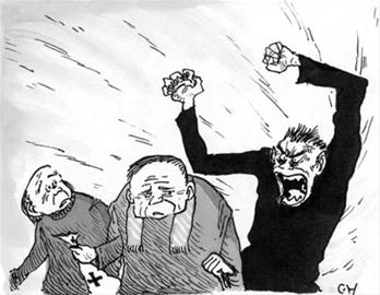 一对年近古稀的老夫妻,因儿子常年在国外工作,只剩下夫妻俩相互扶持照顾。去年6月30日傍晚,老先生身体不适,老太太陪他一起到曲阳医院去看病。从医院回来,途经玉田支路31号门口时,一个骑助动车送盒饭的人突然骑车超过了他们,然后停下车指着两人破口大骂,原来,骑车人嫌两个老人走得太慢,挡了他的路。随即,骑车人又向老先生挥拳相向,老先生一下子倒在地上。路人纷纷指责骑车人,他一看大事不好,马上骑车跑了。老太太又急又气,再看车牌已经来不及了,她连忙报警,并送老先生去医院,医生诊断为右股骨、颈骨骨折,并建议在家静养,不料,老人突然发热抽搐,经医治无效后于7月2日去世。